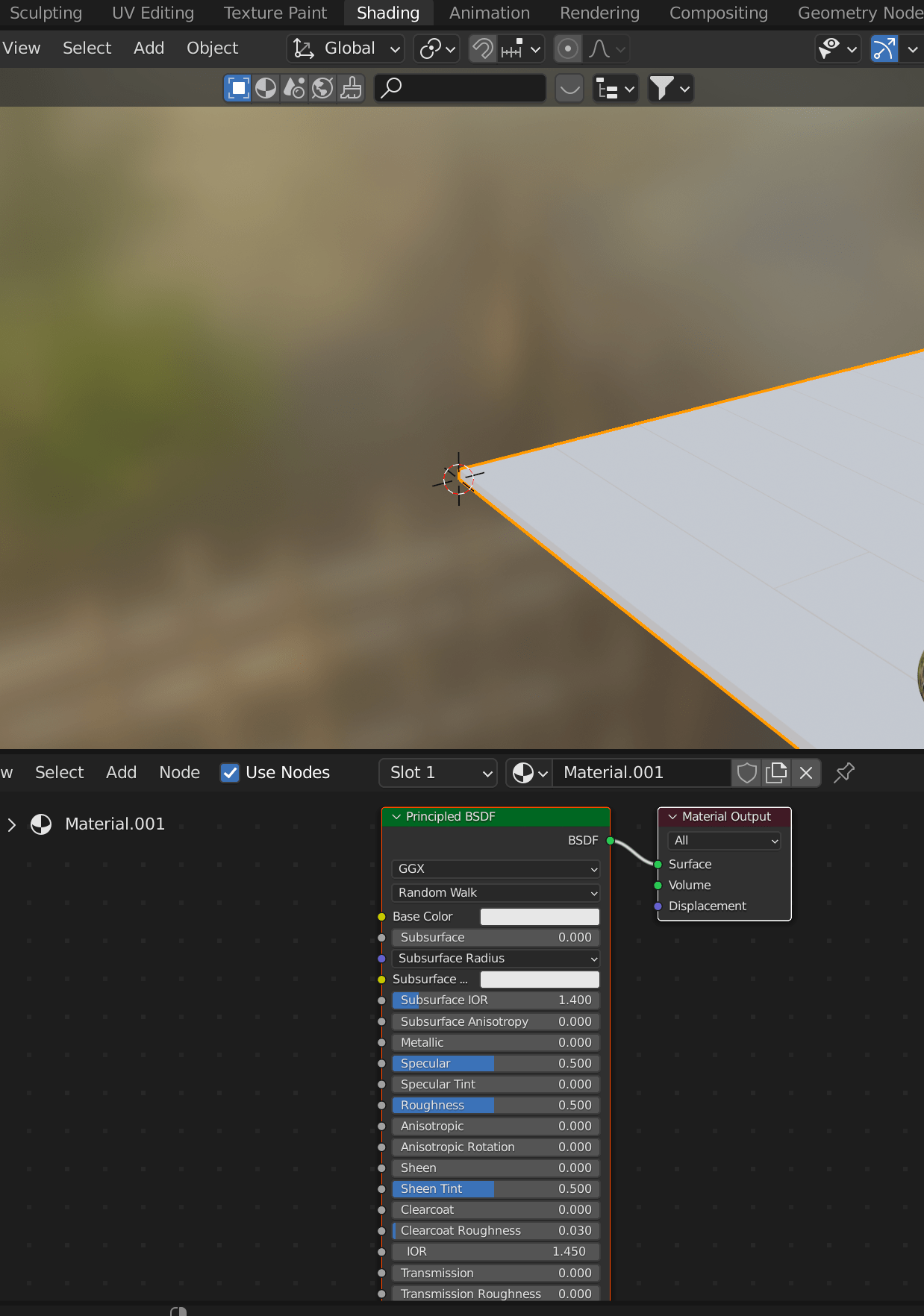 Now press the shading tab at the top and then click to create a new principled material in the nodes tab: